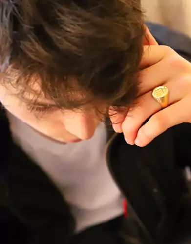 La Chevalière Olympe Massive Brossée est un bijou d’une grande qualité en or massif 18 carats, disponible en or jaune ou blanc. Son large plateau ovale de 12x8mm est méticuleusement travaillé avec une finition brossée qui lui donne un éclat discret et raffiné. Ce modèle se distingue par sa personnalisation unique grâce à la gravure de blason sur-mesure, réalisée par notre graveur héraldiste expert.