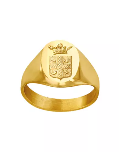 La Chevalière Olympe Massive Brossée avec un blason sur-mesure est un bijou de qualité en or massif 18K, disponible en or jaune ou blanc. Son large plateau ovale de 12x8mm est finement travaillé avec une finition brossée, offrant une élégance sobre et raffinée. Le blason gravé sur mesure par notre expert héraldiste confère à cette chevalière une touche personnalisée et unique. Chaque pièce est fabriquée à la main en France, garantissant un savoir-faire artisanal d’exception et vous offrant un bijou de qualité.